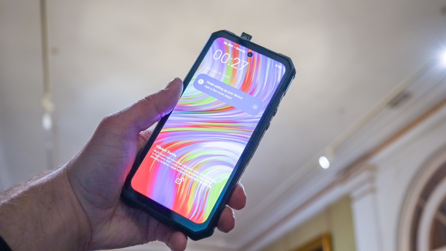 Dincolo de această funcție neobișnuită, Oukitel WP63 este construit în jurul unei baterii masive de 20.000 mAh, una dintre cele mai mari întâlnite pe un smartphone. Capacitatea permite nu doar autonomie extinsă, ci și alimentarea altor dispozitive prin USB-C, la o putere de până la 18W. Telefonul este vizibil gros și robust, fiind gândit pentru utilizare în medii dure.