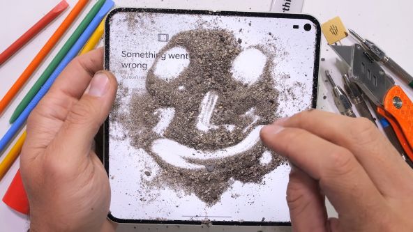 Cu toate acestea, nisipul pe care Zack îl presară pe smartphone se strecoară ușor în mecanismul intern al balamalei. E greu de înțeles cum de acest telefon a primit certificarea IP68 în forma actuală.
