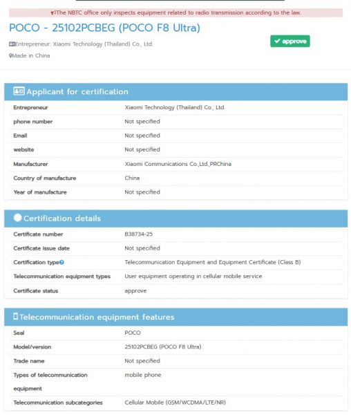 Se pare că POCO nu pierde vremea. Modelul POCO F8 Ultra tocmai a fost depistat în baza de date a autorității NBTC din Thailanda, ceea ce sugerează că lansarea sa ar putea avea loc mai devreme decât termenul estimat inițial, adică martie 2026. Dacă zvonurile din online sunt corecte, pare că terminalul ar putea debuta la nivel global până la finalul acestui an. Detalii avem mai jos!