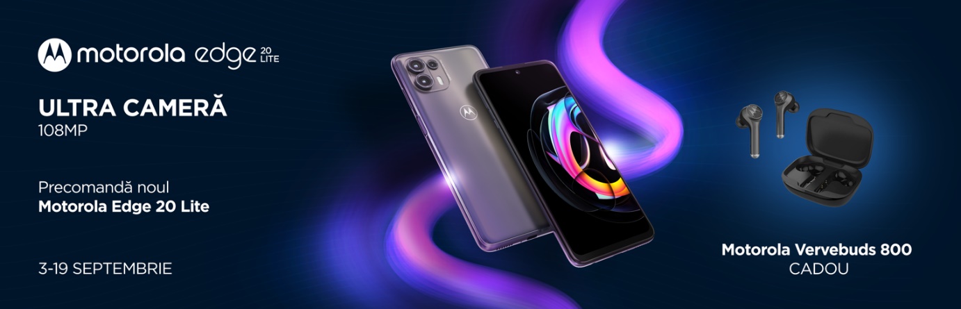 În perioada 3-19 septembrie cei de la Motorola organizează o campanie specială de precomandă, astfel că la achiziția telefonului din magazinele eMAG și Altex sau din magazinul online Motorola, vei primi cadou o pereche de căști Motorola Vervebuds 800. Acestea s-ar vinde separat pentru suma de 499 lei și sunt rezistente la apă IPX4. Oferă până la 18 ore de playback, vin cu microfoane duale și se conectează la smartphone prin Bluetooth 5.0.