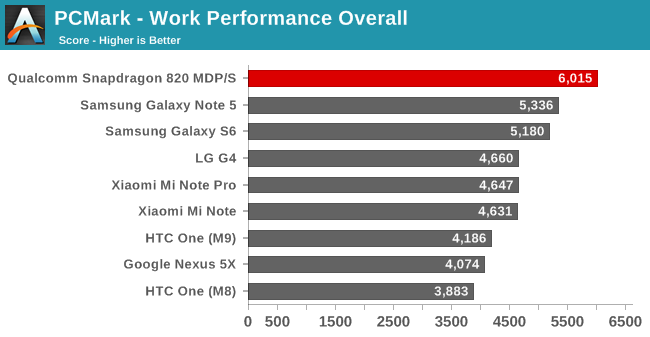 Scorul total în Basemark OS II 2.0 a fost impresionant, 2381, faţă de 2534 al lui iPhone 6S Plus şi depăşind modele că Galaxy S6 şi Note 5 cu aproximativ 400 de puncte. În schimb în testul GFXBench Manhattan, prototipul de referinta a atins 14 FPS, în faţa lui Xiaomi Mi Note Pro, ce atinge 10 FPS, sau Galaxy Note 5, cu 6.7 FPS.
