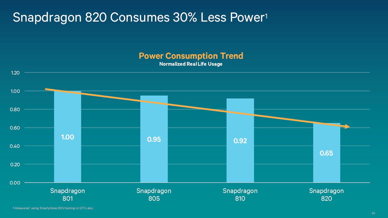 Se pare că S820 ar urma să fie pe aproximativ 60 de telefoane şi tablete în 2016, inclusiv nume mari precum Galaxy S7. Qualcomm a folosit o platformă de referinţă pentru testare, sub forma prototipului de telefon pe care îl vedeţi mai sus. Prima veste bună e că a dispărut supraîncălzirea, care făcea probleme pe Snapdragon 810 şi a fost redus consumul cu 30% fata de predecesori.
