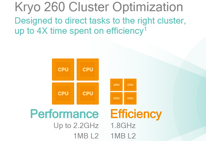 În cazul lui Snapdragon 660 avem parte tot de o arhitectură true octa-core, dar cu 8 nuclee Kryo 260 tactate la o frecvență de 2.2 GHz. Acest CPU este cu 20% mai rapid decât SD653, iar Adreno 512 oferă o performanță grafică cu 30% mai mare decât cea adusă de către Adreno 510. Avem și aici ultimul model LTE Snapdragon X10, suport Wi-Fi 802.11ac Wave 2, 2x2 Mimo, Bluetooth 5.0 și ni se promit viteze de download de până la 600Mbps folosind datele, respectiv 867Mbps folosind rețeaua Wi-Fi.