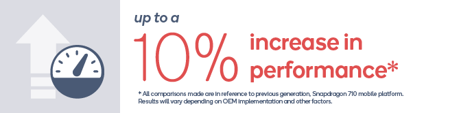 Aceste nuclee rulează acum la o frecvență de 2.3 GHz vs. cea de 2.2 GHz de pe cipset-ul Snapdragon 710. Deși creșterea nu este semnificativă, oficialii Qualcomm afirmă că performanța în materie de gaming ar primi un boost, fiind oferită aici și soluția GPU Adreno 616.