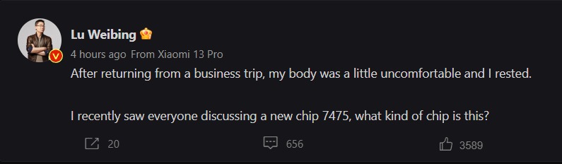 Președintele Redmi, Lu Weibing, a dezvăluit recent pe contul său de weibo noul CPU, dar nu a oferit detalii cu privire la acesta. În schimb, tipster-ul Digital Chat Station a descoperit câteva informații cu privire la CPU și le-a dezvăluit. Se pare că ar fi vorba despre un Snapdragon 8+ Gen 1 tactat la o frecvență mai joasă.