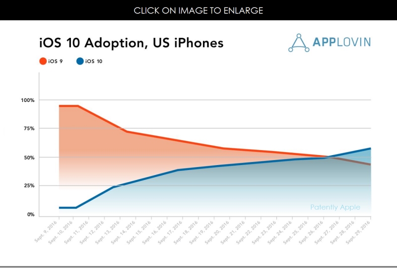 În State utilizatorii lui iOS 10 au o cotă de 55% în această comparaţie, în vreme ce iOS 9 rămâne la restul de 45%. Cifrele sunt confirmate de către cei de la Mixpanel şi AppLovin, care urmăresc ratele de instalare ale platformelor Apple. Ca o comparaţie, în acest moment Android 6.0 Marshmallow, care are deja un an vechime rulează pe mai puţin de 19% din modelele Android.