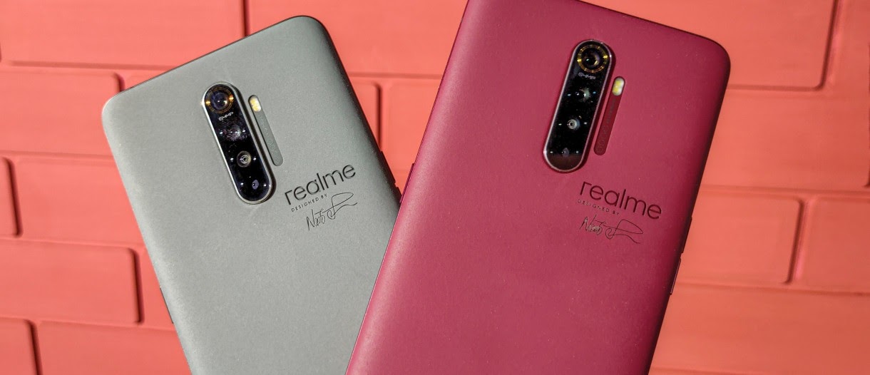 Primul Master Edition a fost o ediţie specială de Realme X lansată în 2019, care venea în variantele "Garlic" (usturoi) şi "Onion" (ceapă) - foto mai sus. Apoi Realme lansa un X2 Pro Master Edition în "Cărămidă Rosie" şi "Beton" (fotografie mai jos), iar imediat după a venit un X50 5G Master Edition, cu model de linii şi cercuri.