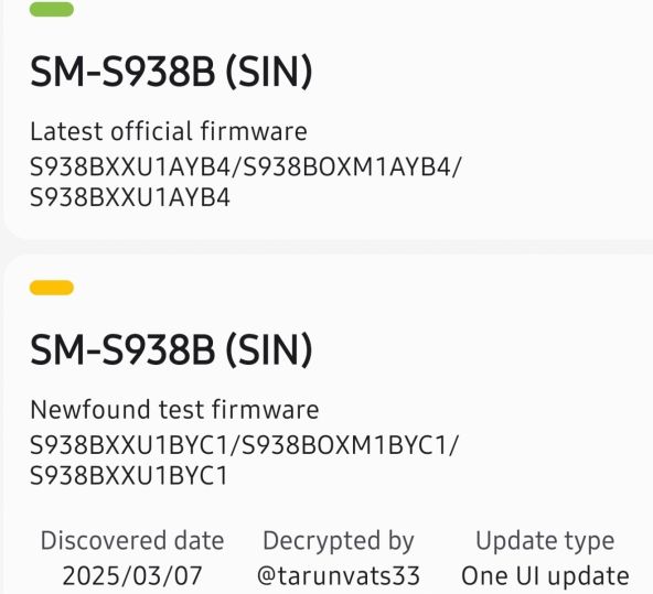 Potrivit lui Tarun Vats, un tipster activ pe X (fostul Twitter), un nou firmware pentru Galaxy S25 Ultra a apărut pe serverele Samsung, având versiunea S938BXXU1BYC1. Analizând convenția de numerotare a firmware-urilor Samsung, această literă „B” din codul versiunii indică faptul că este vorba despre o nouă generație de One UI, ceea ce înseamnă, cel mai probabil, Android 16 cu One UI 8.0.