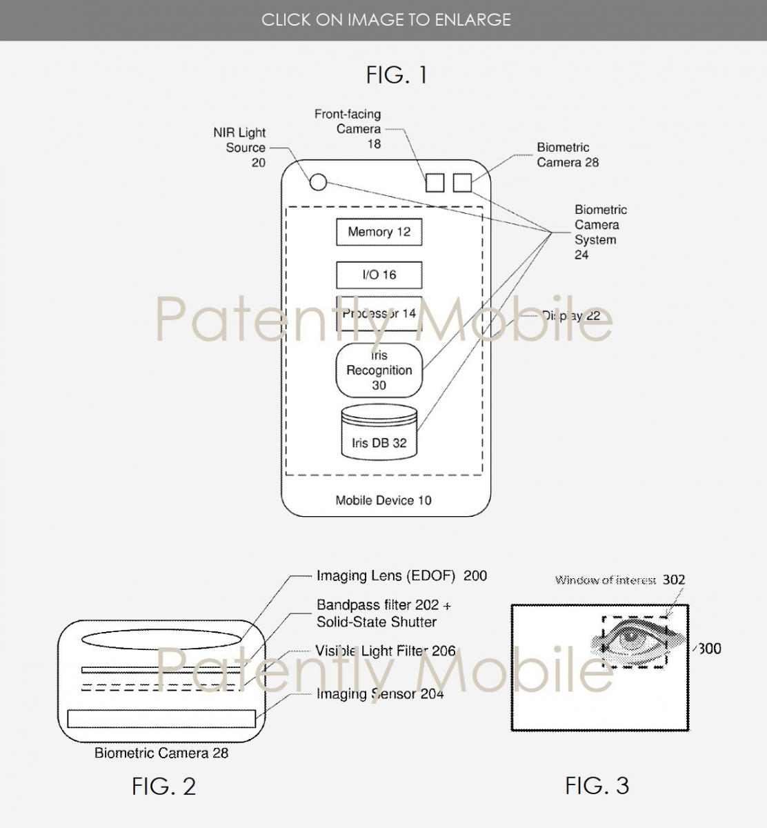 Aflăm că există un brevet aprobat de USPTO (Biroul SUA de Trademark-uri şi Brevete) din trimestrul 2 al acestui an. Camera poate fi integrată în terminalul mobil şi va scana irisul utilizatorului prin camera frontală a smartphone-ului. Tehnologia va mai oferi şi suport pentru detecţie a proximităţii, vedere nocturnă, senzor "time of flight", poziţie a ochiului şi tracking pentru direcţia privirii.
