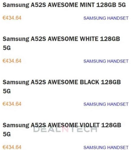 Descoperim în primul rând faptul că acest A52s va avea 128 GB stocare flash în configurația de bază și că prețul său de comercializare în Europa va fi de 434.64 euro ~ 2.140 lei. O altă sursă spune că acest model cu 6 GB RAM + 128 GB stocare va costa 429 euro, dar diferența dintre prețurile vehiculate nu este foarte mare.