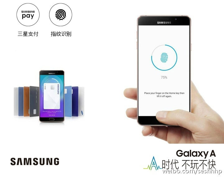 Samsung Galaxy A9 va oferi şi un scanner de amprente integrat în butonul fizic Home, suport 4G LTE şi o baterie generoasă de 4000 mAh, cu încărcare rapidă. La interior se va afla atât memorie internă de 32 GB, cât şi 3 GB RAM şi un slot microSD. Noul venit va fi disponibil în China aparent chiar din această lună, pe alb, auriu şi roz.