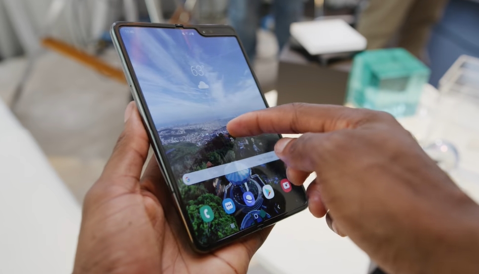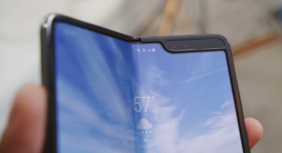 Primul lucru pe care youtuberul ni-l amintește este că acest telefon vine cu un mic ecran la exterior și cu un ecran pliabil generos de 7.3 inch la interior, atunci când clapeta este deschisă. Din start MKBHD ne anunță că Galaxy Fold este un telefon gros și totodată greu, construcția sa dând impresia a două telefoane Galaxy lipite unul de altul.