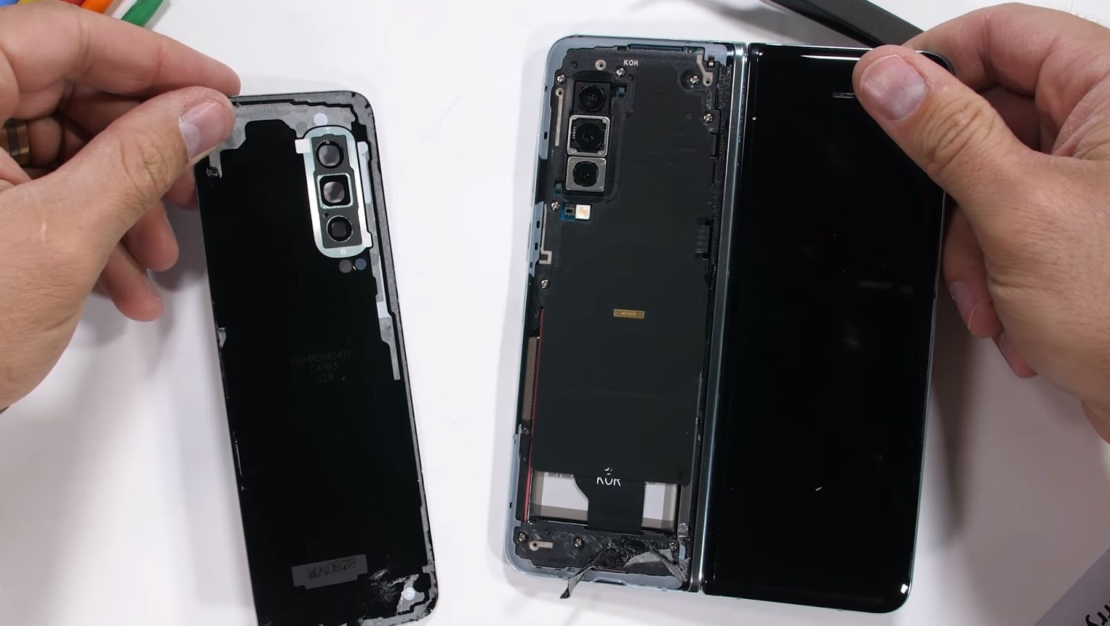 Am mai văzut o disecţie prin primăvară, de la iFiXit, dar Samsung le-a cerut să o dea jos de pe site, pentru că telefonul nu era gata în varianta finală. Zack de la JerryRigEverything a avut şi un scop la această disecţie: să desambleze telefonul şi să păstreze doar unul dintre ecrane pentru a folosi doar jumătate de telefon ca handset normal.