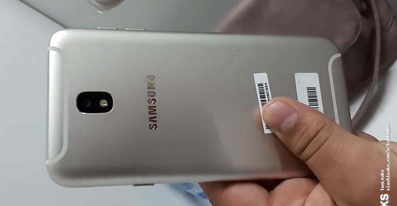 Descoperim faptul că Samsung Galaxy J7 (2017) rulează sistemul de operare Android 7.0 Nougat alături de interfața Samsung Experience 8.1 pe care o regăsim și la bordul lui Galaxy S8. Avem un corp unibody cu spate metalic și un setup inedit al antenelor, respectiv un panou frontal acoperit de sticlă 2.5D. Vedem pentru un moment și interfața camerei foto, remarcând totodată prezența unui bliț frontal.