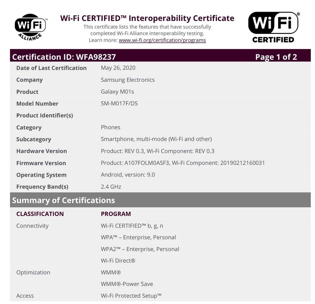 Samsung Galaxy M01 a înregistrat o scăpare la final de lună martie 2020, când era certificat de WiFi Alliance. Acum aflăm că numele său este real, iar telefonul ar fi gata de lansare. Denumirea sa a apărut menționată în India, alături de un preţ şi dotări.