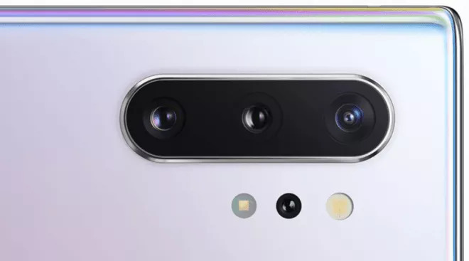 După cum menționam mai sus, Note 10 și Note 10+ vor avea un setup foto reamplasat, găsit acum în colțul stânga din spate sub forma unui modul vertical. Ambele modele adoptă un setup triplu cu senzor principal de 12 mpx cu deschidere a diafragmei în 3 trepte (f/1.5 - f/1.8 - f/2.4), senzor secundar ultrawide de 16 mpx (f/2.2) și un al treilea senzor de 12 megapixeli pentru zoom optic 2x (f/2.1).