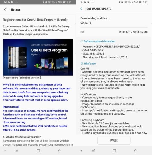 Build-urile beta de One UI pentru Note 8 apăruseră pe serverul Samsung de ceva vreme, deci era doar o chestiune de timp. Faptul că beta-ul a început pe Note 8 le dă speranţe şi celor care au telefoane Samsung Galaxy S8. Şi acelea au apărut pe serverele Samsung recent. Sud-coreenii au deschis înregistrarea la beta One UI pentru posesorii de terminale Note 8.