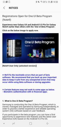 Samsung ar fi deschis înregistrările pentru beta-ul lui Note 9 în SUA de săptămâna trecută, dar nimeni nu primise încă softul. Acesta vine de abia în această săptămână, iar actualizarea a fost confirmată în India şi Germania în aceste momente. Înregistrările sunt disponibile prin aplicaţia Samsung Members şi trebuie rezervat un loc pentru a avea parte de One UI.