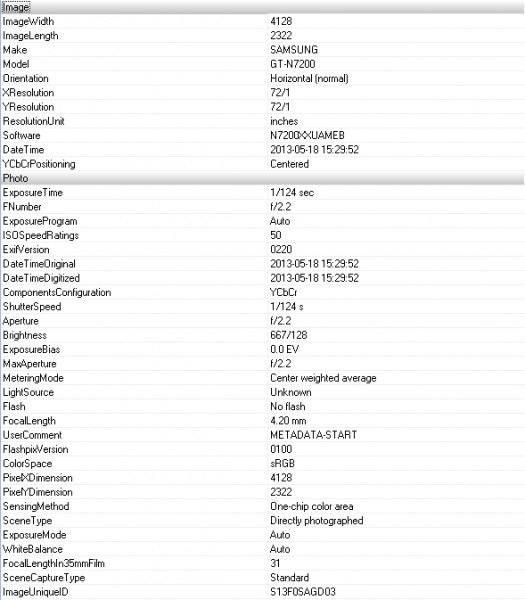 Săptămâna trecută aflăm de la un oficial Samsung că noul Note va sosi la IFA 2013 Berlin și va fi dotat cu display OLED de 5.9 inch. în ce privește fotografia de aici, datele EXIF sunt cele care dau de gol identitatea phabletului, deși ele pot fi falsificate cu ușurință. Conform acestor date, fotografia ar fi fost realizată cu un model Samsung cu nume de cod GT-N7200 și versiunea firmware N7200XXUAMEB.