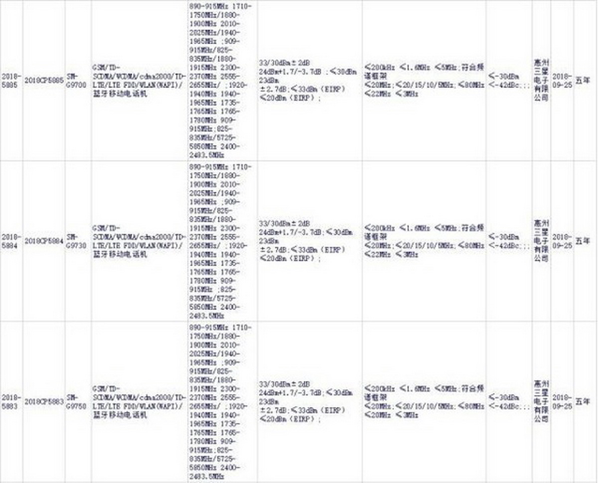 Samsung Galaxy S10 a apărut la Ministerul Industriilor şi Tehnologiei Informaţiilor din China, obţinând aprobarea pentru variantele cu numele de cod SM-G9700, SM-G9730 şi SM-G9750. Acestea sunt modelele destinate Chinei, iar cele internaţionale vor fi SM-G970F, SM-G973F și SM-G975F. Toate cele 3 modele au fost aprobate, cu suport complet pentru reţelele chineze si infrastructura locala Netcom. Zvonurile recente afirma că Galaxy S10 va fi primul terminal cu procesorul flagship cel nou de la Qualcomm, Snapdragon 8150.