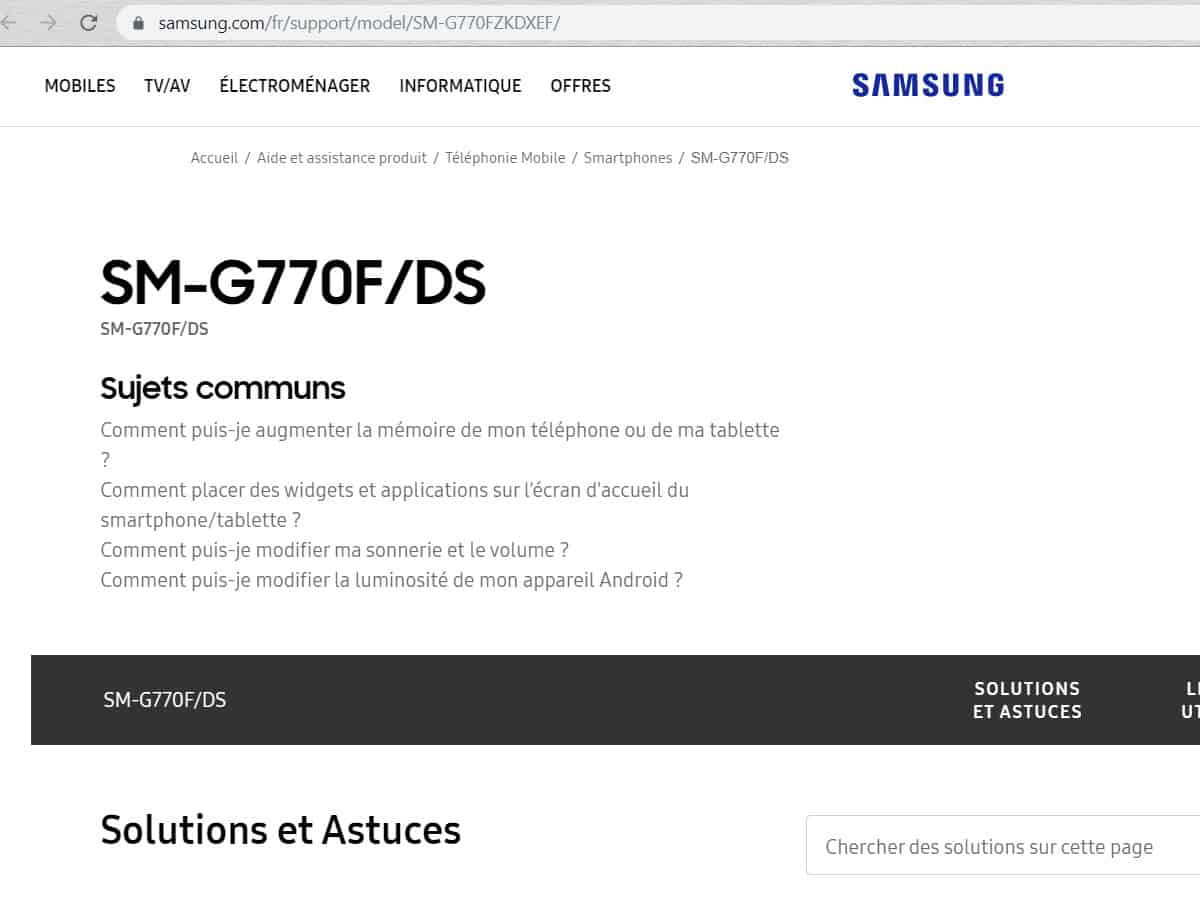 Ştim că acest dispozitiv a apărut cu numele de cod SM-G770F la un moment dat în scăpări de benchmark-uri şi fix acelaşi cod apare şi pe site-ul oficial Samsung Franţa. Nu avem din păcate şi specificaţii listate de francez, dar scăpări trecute ne-au indicat sosirea unui procesor Snapdragon 855 la interior, o cameră principală de 48 MP, secundară de 5 MP pentru Bokeh, alături de una de 12 MP ultra wide.