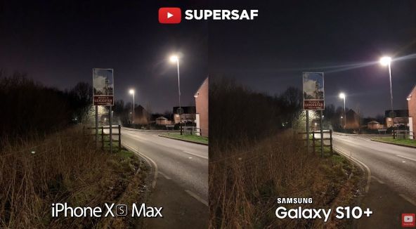 Din start Galaxy S10 Plus are un plus prin faptul că poate filma 4K cu camera frontală, ceva de iPhone XS Max nu poate. La filmare culorile lui Galaxy S10+ pare ceva mai naturale, iar cele de la iPhone par cam prea aprinse. Stabilizarea este net mai bună la Galaxy S10 Plus, mai ales cu modul Super Steady activat, care apropo se aplică doar la filmare Full HD. Autofocalizarea este excelentă pe ambele device-uri, fiind greu de declarat un câştigător.