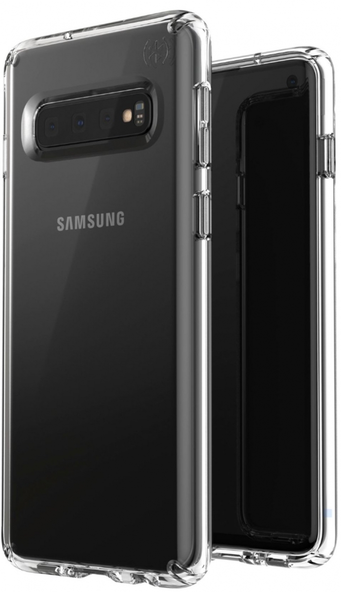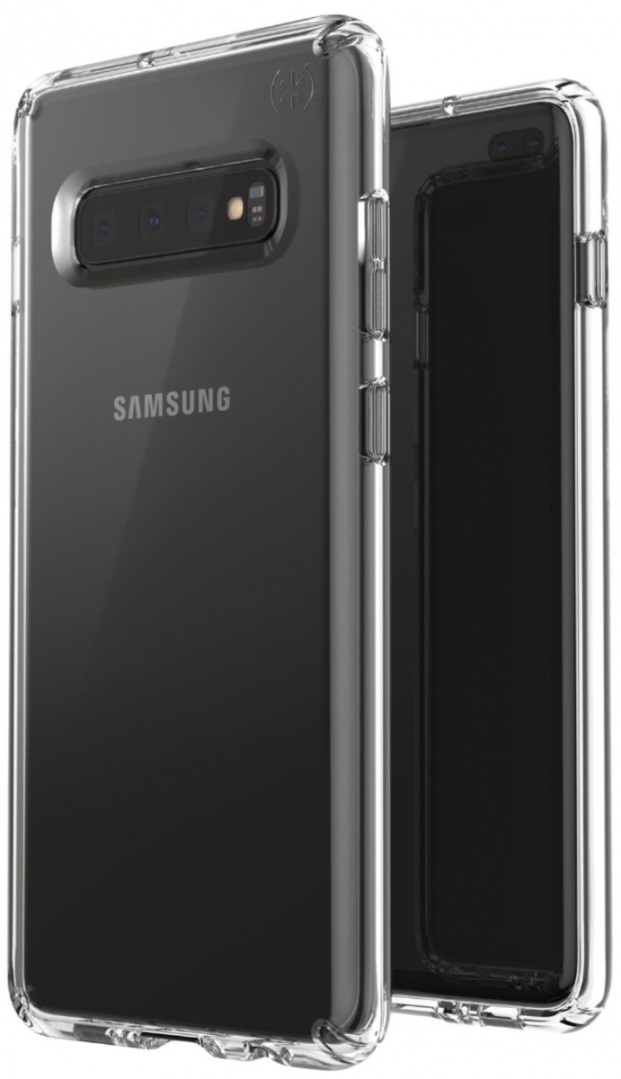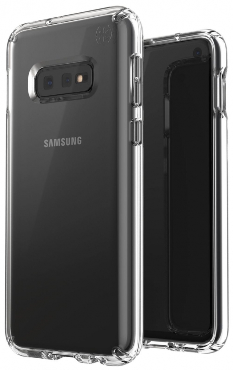 Deși terminalele sunt prezentate cu huse transparente aplicate, acestea ne oferă o privire aproape completă asupra design-ului ce va fi adoptat în cazul de față. Mai sus îl puteți vedea pe Galaxy S10 Lite / S10E care va oferi un ecran de 5.8 inch, decupaj în display pentru camera selfie și un scanner de amprente lateral. Are totuși o cameră duală în spate.
