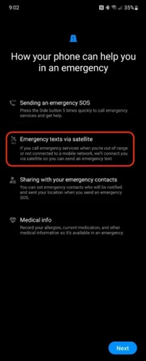 Acest feature a fost confirmat de un screenshot apărut în One UI 6.1. Nu e clar dacă e făcut chiar pe un Samsung Galaxy S24 sau cineva a reușit să ajungă la opțiune săpând în codul sursă al unei aplicații. Important e că aflăm cum funcționează funcția. Se pare că odată conectați vom putea trimite mesaje text în situații de urgență, atunci când nu avem semnal. De asemenea, tot prin satelit va putea fi trimisă locația într-un mod precis. E același mod de funcționare ca în cazul unui iPhone sau a unui ceas Garmin, de exemplu.