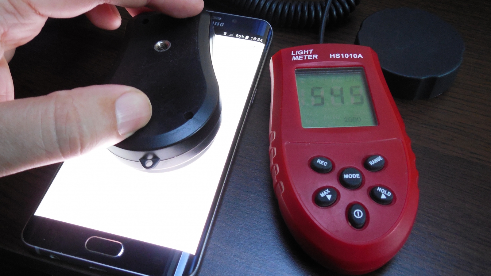 Test luminozitate Galaxy S6 Edge+ cu senzorul de luminozitate la lumina camerei