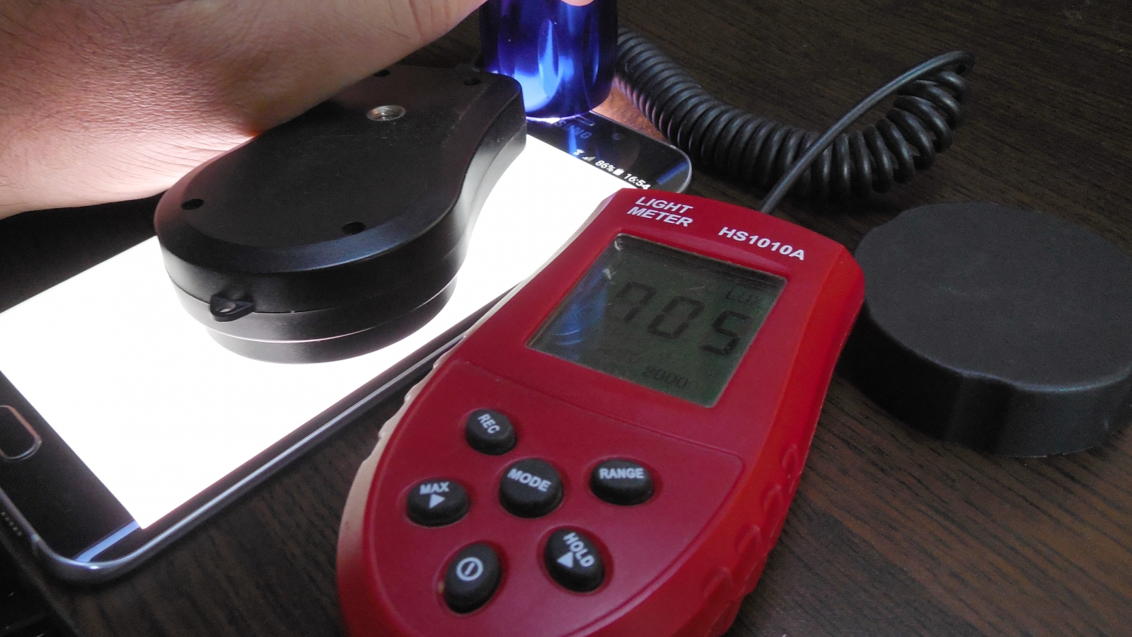 Evident, având în vedere că realizăm testele mereu în aceleaşi condiţii, am fost oarecum surprinşi de insistenţa cu care am fost criticaţi şi am hotărât să analizăm situaţia. Testele de luminozitate le facem pe timp de zi la lumina din cameră, cu senzorul de luminozitate expus şi cu luxmetrul lipit de ecran, valoarea obţinută astfel fiind relevantă, foarte aproape de adevăr.