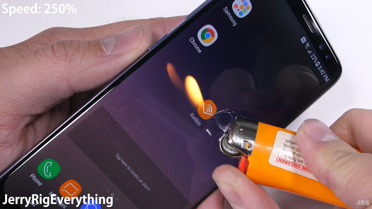 Mă întreb deseori dacă JerryRigEverything se duce la sală şi trage de fiare special pentru a avea putere să îndoaie smartphone-uri. Dacă era un YouTuber de 50 de kilograme mai erau relevante testele de îndoire oare? Lăsând la o parte aceste dileme, iată că a venit şi rândul lui Samsung Galaxy S8 să treacă prin testele sale clasice, de zgâriere, îndoire şi ardere cu bricheta.