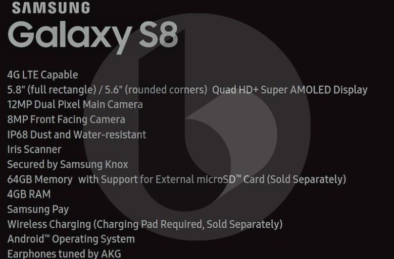 Ieri faimosul zvonac Evan Blass publica o listă cu specificaţiile lui Galaxy S8+, iar azi vedem o listă de acest gen şi pentru Galaxy S8. Dotările sunt foarte, foarte similare, practic în afară de diagonală totul e identic.