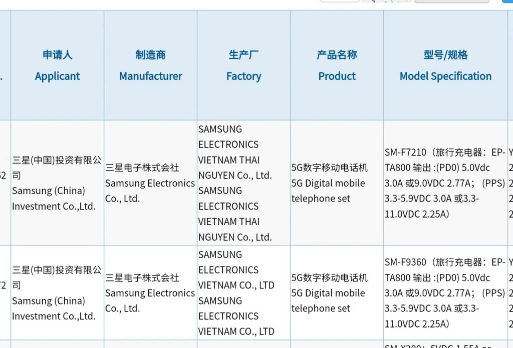 Listarea în baza de date 3C ne mai spune doar că o parte din aceste unități vor fi fabricate în Vietnam. Având în vedere că telefoanele au primit deja o mulțime de scăpări și au început să își facă apariția în baze de date importante, în următoarele săptămâni ar urma să aflăm mai multe detalii despre aceste noi pliabile Samsung.