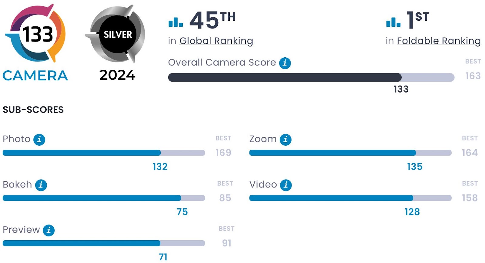 Ştiu, e ceva lume supărată că Samsung Galaxy Z Fold6 aduce pentru al treilea an la rând aceleaşi camere. Practic are acelaşi setup foto ca şi Galaxy Z Fold4 şi Z Fold5. Evident îmbunătățirile se văd pe partea de procesare, mulţumită noului CPU Snapdragon 8 Gen 3 for Galaxy. Ei bine, acum dăm cuvântul celor de la DxOMark Samsung Galaxy Z Fold6, care au testat capacitatea camerei de pe acest pliabil. Îl plasează pe locul 45 dintre toate telefoanele testate, dar pe locul 1 între pliabile.