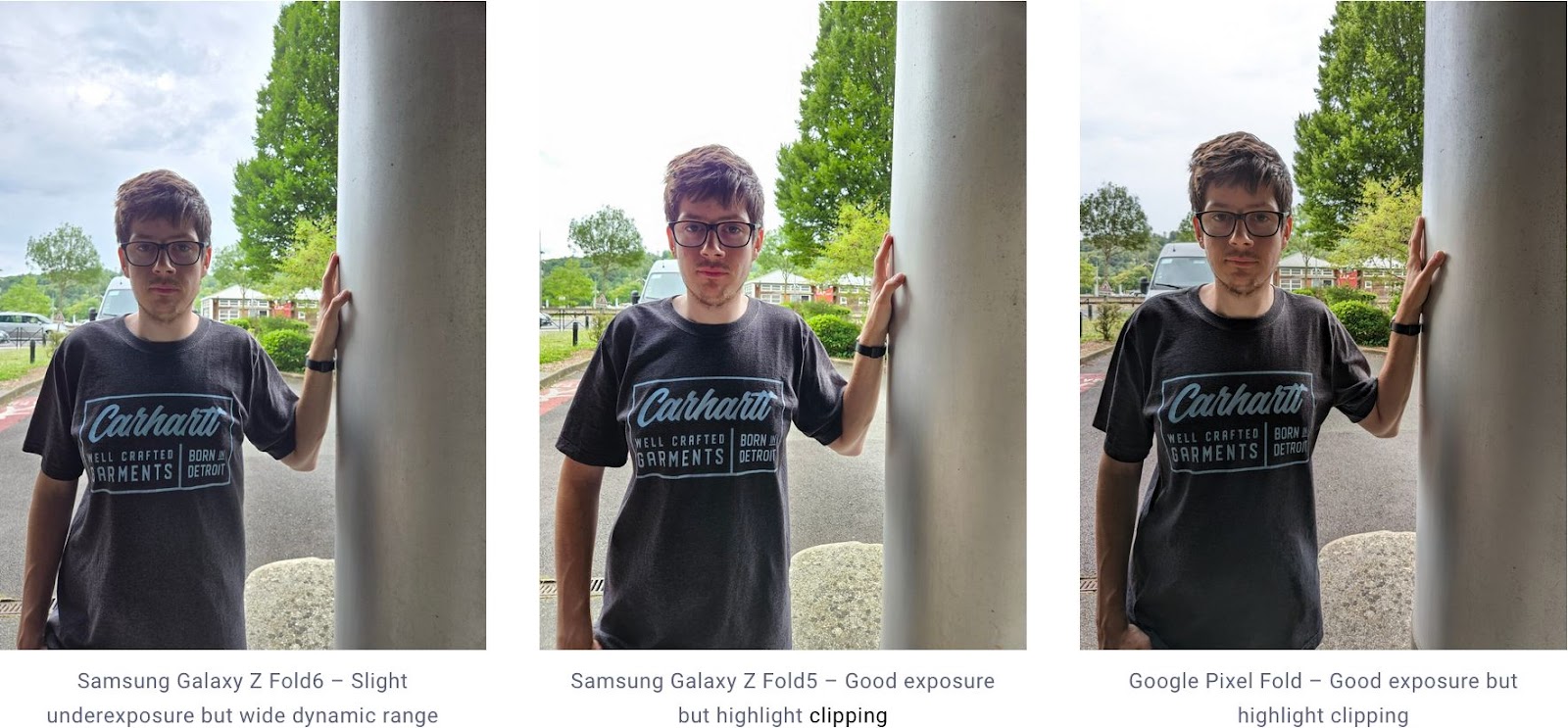 Galaxy Z Fold6 continuă să aibă o cameră selfie ascunsă sub ecranul pliabil de 4 megapixeli, cu o deschidere F/1.8. Deși pixelii de deasupra fac ca aceasta să fie vizibilă pe un fundal alb, îmbunătățirile aduse procesării imaginii ajută la calitatea capturii.
