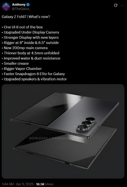 Samsung pare că se pregătește să aducă upgrade-uri serioase pentru pliabile în acest an. Galaxy Z Fold7 ar urma să primească îmbunătățiri pe care fanii le așteptau. Un leak proaspăt ne spune că debutul va avea loc în iulie, iar device-ul va sosi cu Android 16 preinstalat, alături de interfața One UI 8.0. Acum aflăm detalii cu privire la feature-urile integrate de companie odată cu acest model.