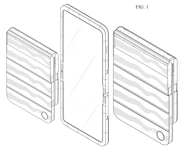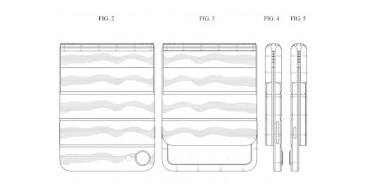 Ca să poată susține plierea dublă, mecanismul de balama trebuie să fie semnificativ mai complex decât cel de pe Galaxy Z Flip. În plus, din schițe se vede că balamaua nu este poziționată fix la mijlocul ecranului, ceea ce lasă o porțiune activă vizibilă chiar și când e închis.