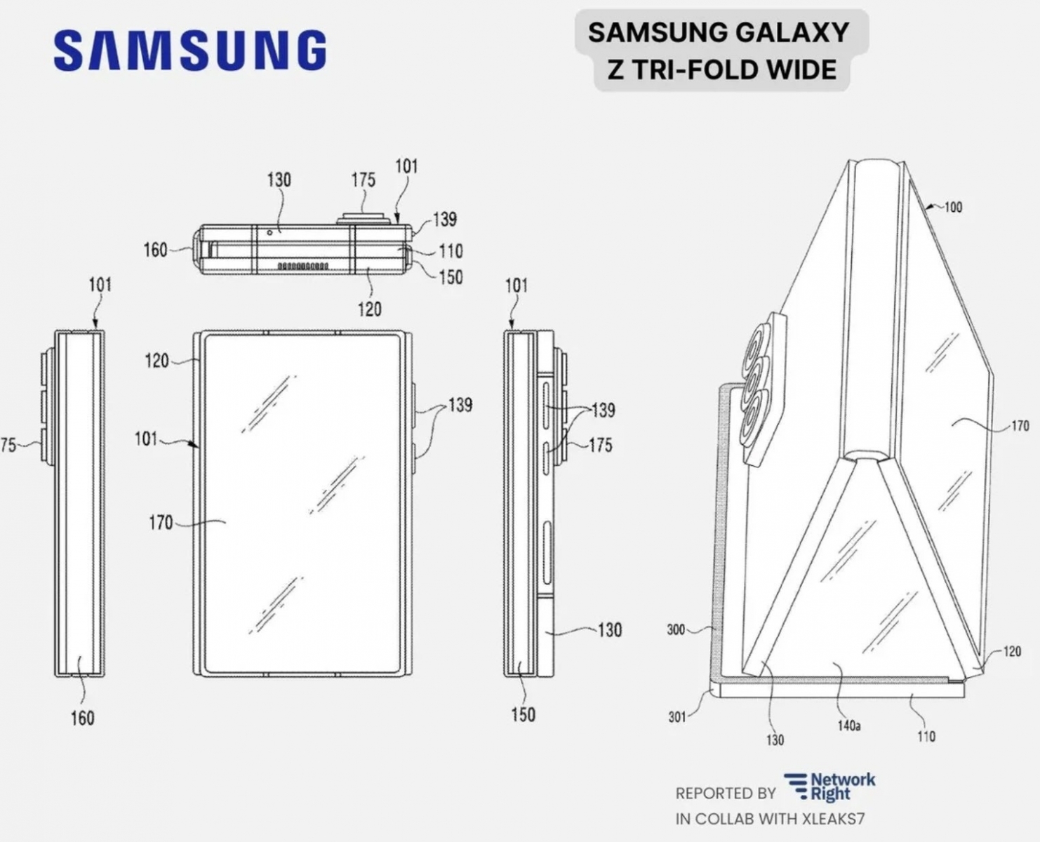Samsung Electronics continuă să experimenteze în zona telefoanelor pliabile, iar un nou brevet apărut online arată că gigantul sud-coreean ia în calcul o reinterpretare a conceptului tri-fold. De această dată vorbim despre un terminal cu trei segmente de ecran și două balamale, dar cu o abordare diferită față de modelele deja cunoscute.
