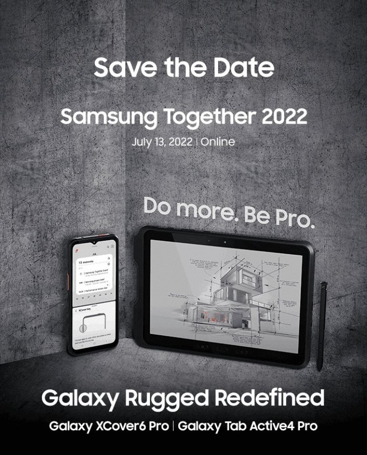 După câteva apariții ale lui Galaxy XCover 6 Pro iată că astăzi telefonul robust de la Samsung primește o dată de lansare și nu vine singur, ci alături de un produs la fel de rezistent și anume tableta Galaxy Tab Active4 Pro. Debutul este programat pentru data de 13 iulie și vorbim aici despre un eveniment organizat în mediul online, confirmat și de teaser-ul de mai jos.