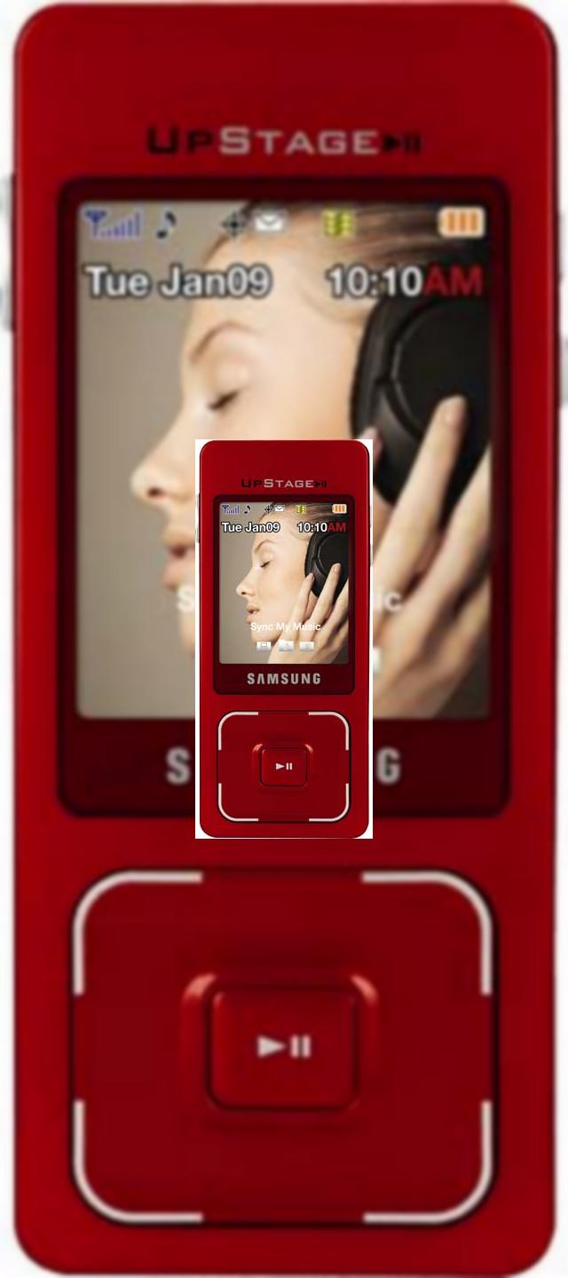 Samsung UpStage se numara prin telefoanele stilate dintre cele oferite de Sprint, cu designul sau dual-face creat special pentru functiile muzicale, dar si pentru apeluri vocale. Totusi, terminalul nu participa la campania de actiuni caritabile Red, dupa cum face omologul sau la capitolul culoare, Motorola Red RAZR, disponibil de asemenea prin Sprint.UpStage Red pastreaza designul slim al modelului original, avand o grosime de doar 0.4 inch.