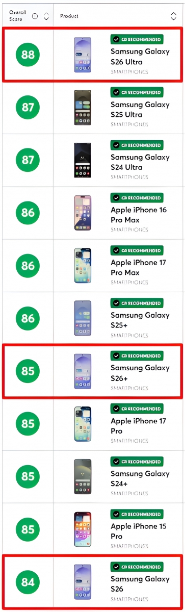 Conform organizației, Galaxy S26 Ultra sse remarcă drept smartphone complet, conceput pentru utilizatorii care își doresc performanță și versatilitate într-un singur dispozitiv. Cât despre topul realizat de Consumer Reports, observ că lista implică și Galaxy S25 Ultra, S24 Ultra, dar și iPhone 16 Pro Max care pare să fie la egalitate cu iPhone 17 Pro Max.