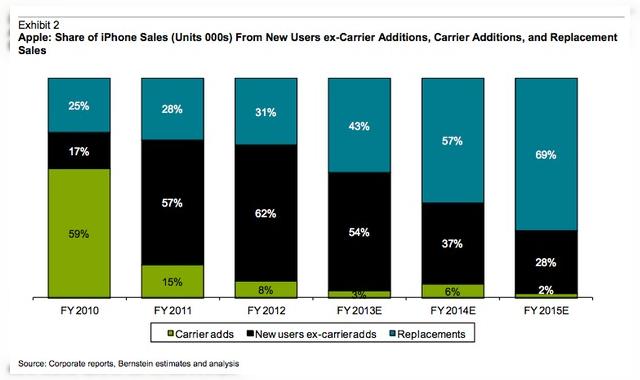 Analistul Toni Sacconaghi de la Sanford Bernstein are câteva cifre foarte interesante cu privire la trendurile de achiziție pe care le urmează iPhone-ul. Se pare că lumea nu mai cumpăra primul iPhone atât de mult pe cât se întâmpla în ultimii ani, iar upgrade-urile castiga teren.