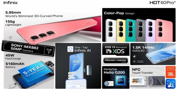 Infinix continuă să-și extindă portofoliul în segmentul entry-to-mid cu lansarea globală a noii serii Hot 60. Vârful de gamă este Infinix Hot 60 Pro+. Deși vorbim în continuare despre un terminal 4G LTE, aduce dotări atractive, în frunte cu o talie ultra-subțire, sexy.