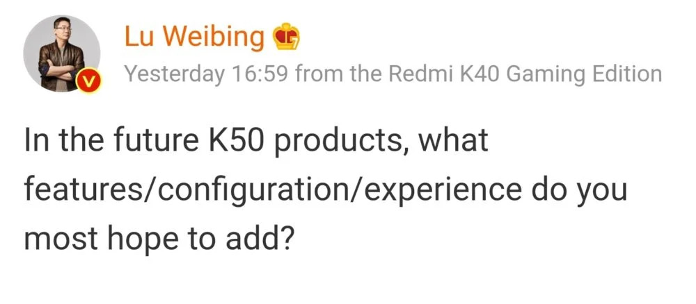 Executivul și-a întrebat fanii pe Weibo ce caracteristici, configurații și experiențe și-ar dori să ofere noile terminale din seria K50. Pe lângă acest lucru, un zvonac renumit, Digital Chat Station, a dezvăluit câteva aspecte legate de această serie. Având în vedere că lineup-ul K40 a debutat recent, ne putem aștepta ca multe dintre caracteristici să fie păstrate sau îmbunătățite.