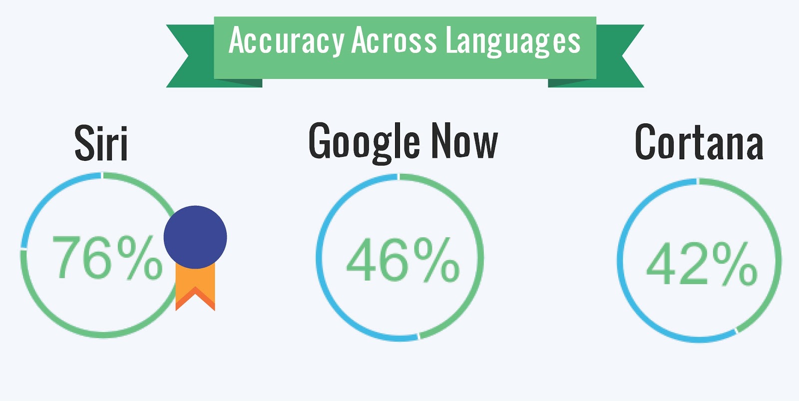 în cadrul testului ce a inclus întrebări în limba engleză, toate cele trei soluții au oferit rezultaate destul de precise, Siri obținând 14.5 puncte dintr-un total de 18, Google Now 11.5, iar Cortana 12.5. Ulterior, s-a trecut la italiană, test unde punctajul obținut de Siri a fost tot de 14.5, în timp ce Google Now și Cortana au dezamăgit cu punctaje de 8.5, respectiv 6.