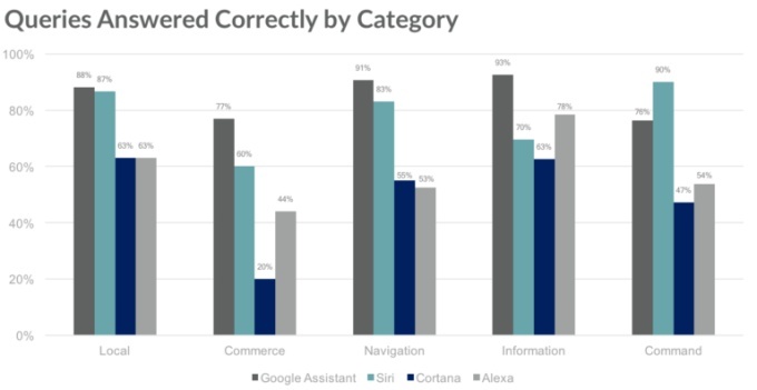 Siri este la 78.5%, iar Google Assistant la 85.5%. E impresionant să vedem soluţia Google răspunzând corect şi precis la atât de multe întrebări din cele 800. Întrebările puse au fost din domenii precum "local", "comerţ", "navigare", "informaţii" şi comenzi de tot soiul. Cu machine learning şi AI-ul care tot evoluează e doar o chestiune de timp până se ajunge la 100%.
