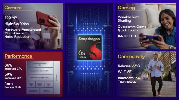 Qualcomm a lansat astăzi un nou procesor. Prin intermediul unui comunicat de presă a fost prezentat Snapdragon 6s Gen 4, cipset dedicat telefoanelor accesibile de pe piață. Interesant e că acest CPU e fabricat pe un proces de litografiere de 4nm, față de modelele vechi de 6nm. Asta se traduce prin eficiență energetică și performanțe ridicate. Ce altceva aduce acest cipset? Detalii avem mai jos!