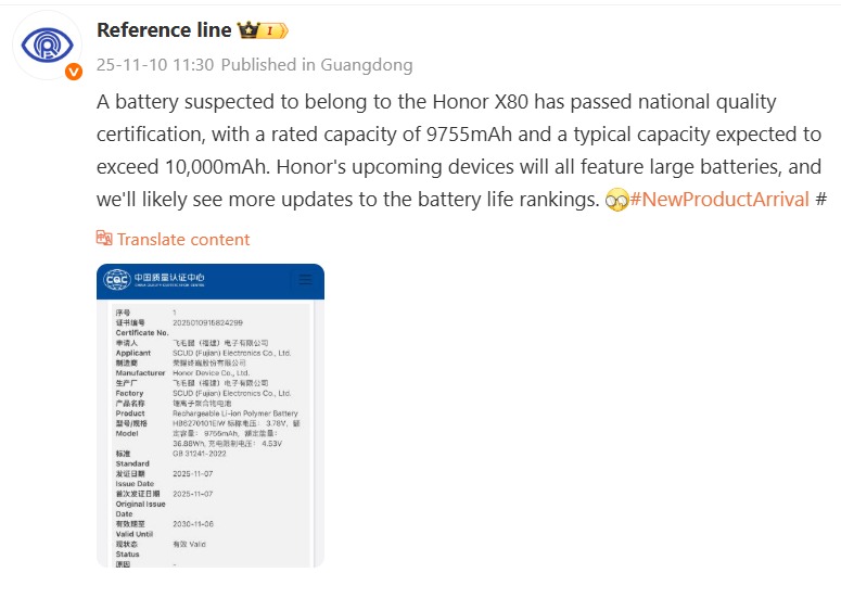 Honor s-a remarcat în ultimele luni pe piața smartphone, integrând în cele mai noi telefoane din portofoliu baterii mari, de peste 7000 mAh. Are în ofertă chiar și un model Power ce aduce baterie de 8000 mAh într-un corp destul de slim. Știm de câteva săptămâni că se află în pregătire și un așa-zis Power 2, cu procesor Dimensity 8500. Acum apare la orizon și așa-zisul Honor X80, ce ar avea procesor Snapdragon high-midrange și va sosi în vara anului viitor.