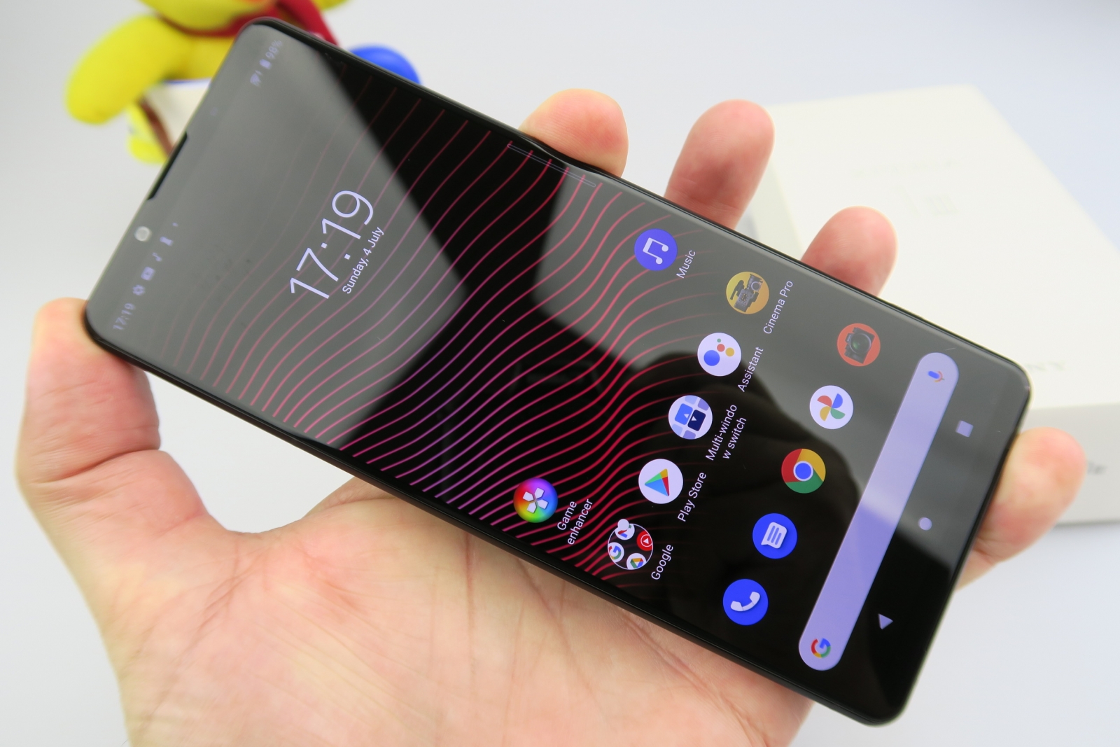 În faţă se afla un ecran OLED de 6.5 inch, cu rezoluţie 4K, de fapt nu Full 4K, ci o rezoluţie mai atipică: 3840 x 1644 pixeli. Veţi avea refresh rate de 120 Hz doar pe rezoluţie Full HD totuşi. Telefonul are şi suport HDR BT 2020 şi aspect 21:9. Sony insistă să nu integreze camera selfie într-un orificiu sau breton în ecran, ci alege să o facă în zona de deasupra ecranului. Asimetria amplasării sale te poate deranja.