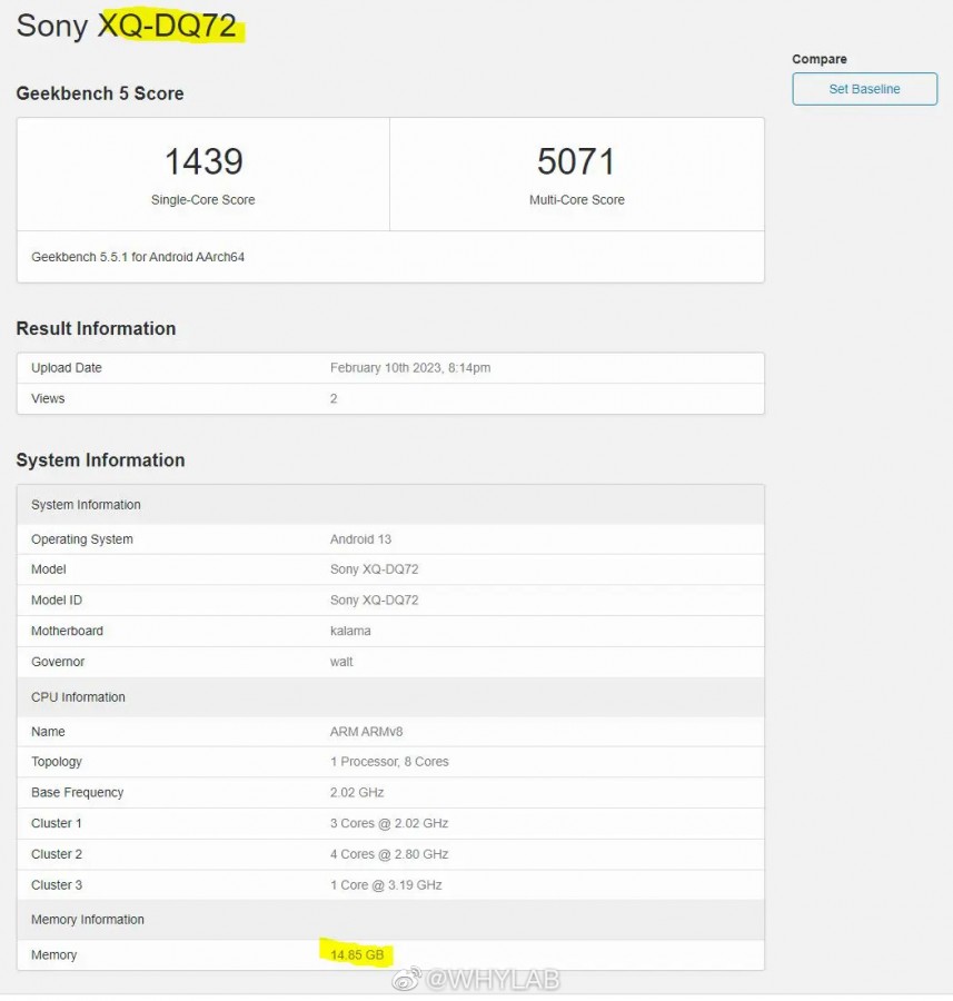 Deși îl vom vedea lansat abia la toamnă, iată că Sony Xperia 5 V a început a fi din ce în ce mai prezent în leak-uri, astăzi bifând o apariție în baza de date GeekBench. Telefonul apare cu numele de cod Sony XQ-DQ72 și descoperim că rulează Android 13 din fabrică. Alte detalii în rândurile de mai jos.